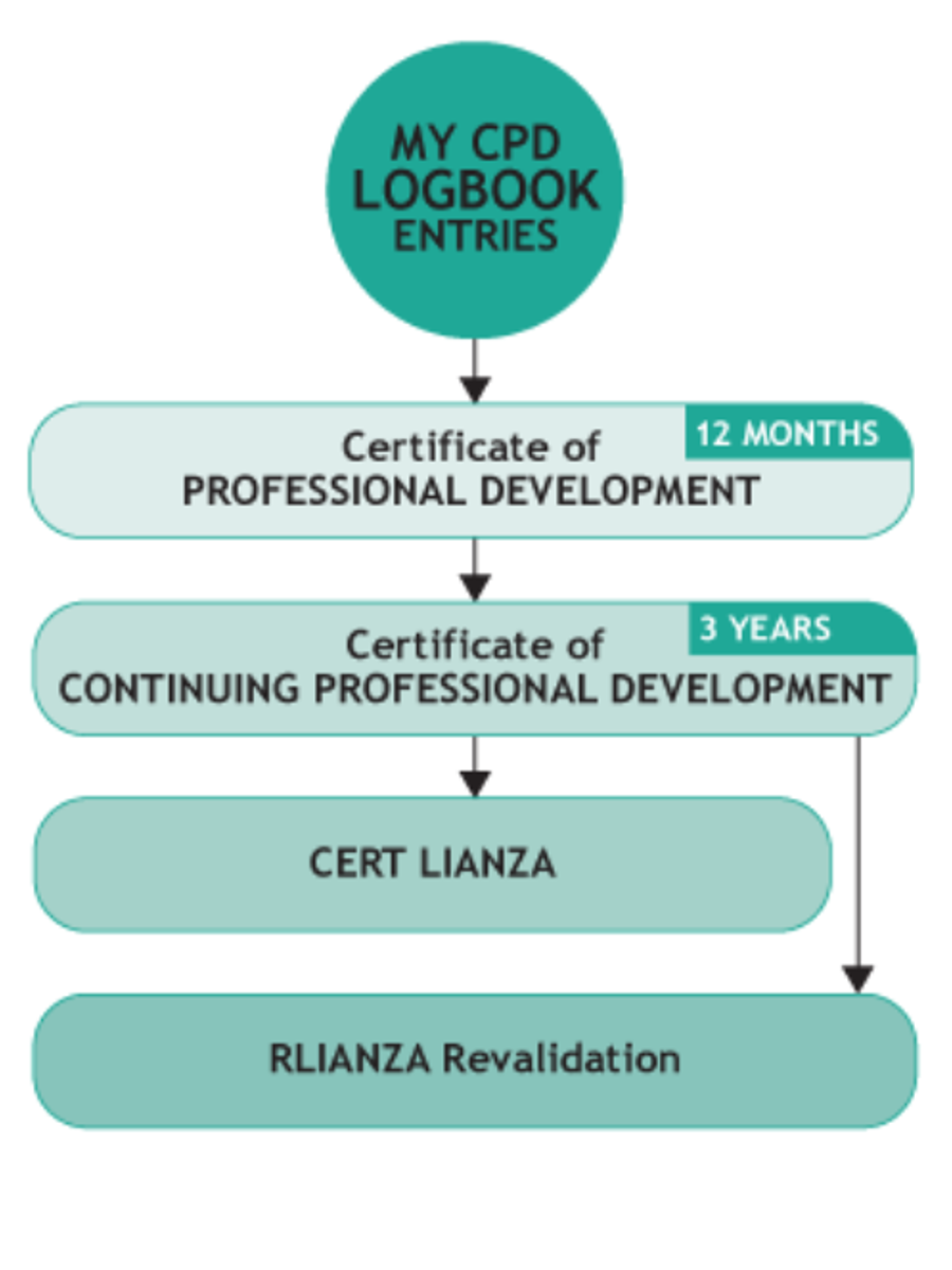 CertLIANZA will use theCPD logbook for members to demonstrate continuous professional development of a minimum of 60 hours over three years. Additional requirements will include an employer's letter of endorsement and a self-assessment statement.