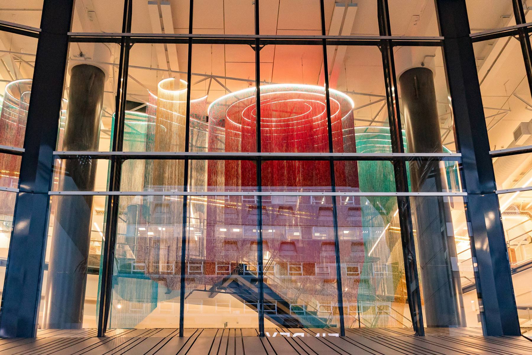 Hohaia’s Ngā Tai o te Ao Mārama through the windows.