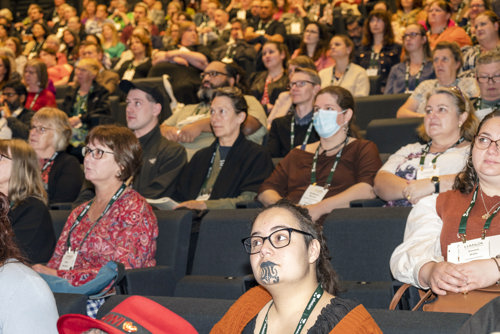 The conference theme, ‘Ngā aho – weaving our threads of knowledge together’, was evident throughout – from the swift processing of registrations and the flow of participants from the auditorium to the breakout rooms, merging and parting, meal breaks, kōrero and workshops, it created a vibrant tapestry.The beautiful Te Pae, our venue for two days, is sleek and new, in contrast to, yet also at home among, the stone provincial council chamber and the bandaged cathedral, genuinely weaving the old and the new together.